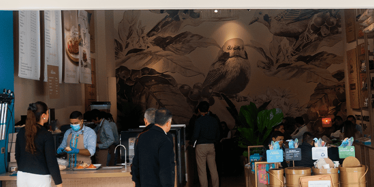 Café 100% colombiano, cultivado en el corazón del Eje Cafetero. Disfruta de una experiencia sensorial única con bebidas frías y calientes, postres y productos gourmet elaborados con café premium.